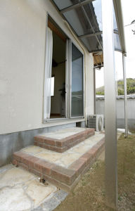掃き出し窓にはお婿さん手づくりのポーチもプラスされて、ますます快適に。