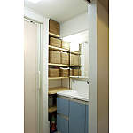 小物やタオル類などの収納場所を確保して、洗面スペースをスッキリ保てるようにしました。