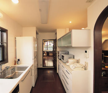 カップボード上部の空間をダイニングとつなげ、開放感をアップ。