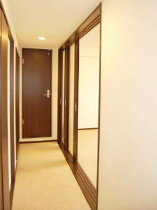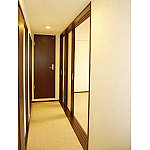 北側の洋室入り口を3枚引込扉にして、開放感のある廊下にした。