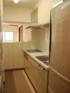リフォーム前とキッチンの勝手は変えたくないという奥様のために、I型キッチンでも使い勝手のよいプランを工夫しました。