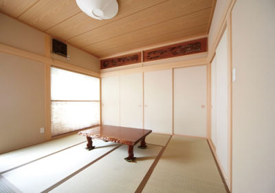 思い入れのある欄間は、仏間に続く引き戸の上に移設しました
