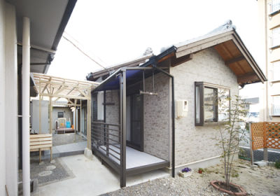お祖母様が一人で住まわれていた離れを受け継ぐことになったK様一家。和室2室の壁を撤去してつくったLDKは、奥様が好きなアジアンテイストに。広いリビングに浮かんでいるような、真っ白なアイランド型キッチンが印象的な空間になりました。中庭に面した大きな掃き出し窓からは、光や風が入り、リビングをより一層居ごこちのよい空間にしています。バスルームとトイレも新設して、コンパクトながら生活に必要な機能をすべて完備しました。以前とはまた違う雰囲気になった離れで、新しい家族の歴史が始まっていきます。