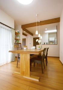 和室にあった愛着のあるテーブルは、脚を長く造作して、ダイニングテーブルに。