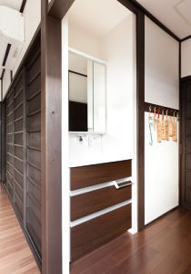 リビングの収納の一部に洗面ドレッシングを設置