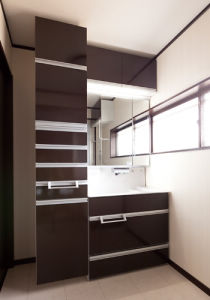 たっぷりの収納を設けているので、洗面室はいつもすっきり