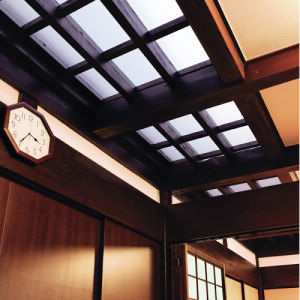 昼はガラス瓦からの採光が1階まで通り抜けます。