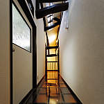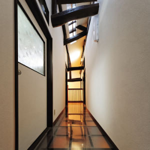 1階から透過する灯りで幻想的な雰囲気の2階廊下。