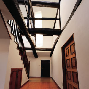 昼はガラス瓦からの採光が1階まで通り抜けます。