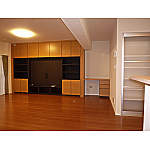 和室をなくして、リビングを拡張。天井までの壁面収納には、リビング廻りの小物もすっきり納まります。隣にはライティングデスクを造作しました。
