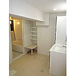 洗面室を広げ、入浴前後に使えるようベンチを設けました。床下点検口を新設。万が一の時も、ここから配管を確認できます。