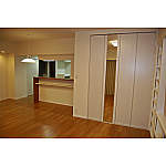 キッチンカウンター下は新聞や携帯の充電スペース。リビング収納のミラーがお部屋を広く見せる効果をもたらします。