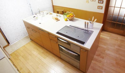 お料理の様子が見えるように、あえてダイニング側にIHクッキングヒーターを配置。