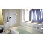 浴室の外側には、遊び心のある坪庭的な開放スペースを設けました。