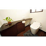 飾り棚がおしゃれなトイレは、しっかりと収納スペースを確保。