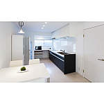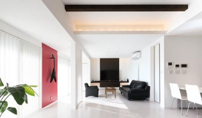 南に瀬戸内海を望む中古戸建を購入し「モダン」をコンセプトにフルリフォームされたB様。和室と縁側を取り払ってLDK空間に組み込み、間接照明や調光機能など多様なライティングを施しました。内装は白で統一し、アクセントカラーには赤を使用。スタイリッシュに完成した開放的なリビングは眺めもよく、家族だけでなく、ご主人のバンド仲間のお友達にとっても憩いのスペースとなっています。「まるで新築のマンションみたい」に生まれ変わった家で、念願のひとり部屋を手に入れたお子様たちと共に、快適に過ごされる毎日です。