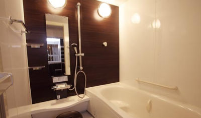 脱衣所には座って服が脱げるようにベンチを造作し、バリアフリーに配慮。