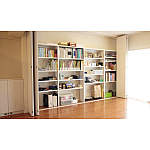 収納棚に扉をつけることで目隠しになり、お部屋はいつもスッキリ。