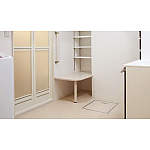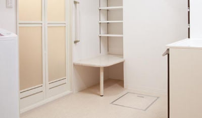 脱衣所には座って服が脱げるようにベンチを造作し、バリアフリーに配慮。
