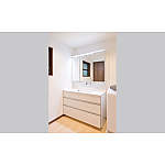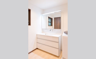 いわゆる“離れ”となっていた水廻りは撤去して、DK部分の増築によって水廻りを新設。キッチンからのアクセスもスムーズで、奥様にとっても使い勝手のいい動線に生まれ変わりました。