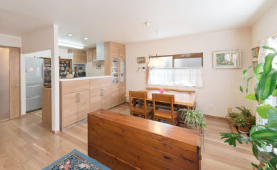 美しい木目が特長のリアロオーク柄に統一した内装でナチュラルな雰囲気に。ぱっと気持ちまで明るくなるような居心地に、大変ご満足のご様子でした。