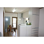 食器棚と家電収納がテーブルを挟んで配置されていて、狭く動きがとれませんでした。廊下へのドアも食器棚でふさがれていました。