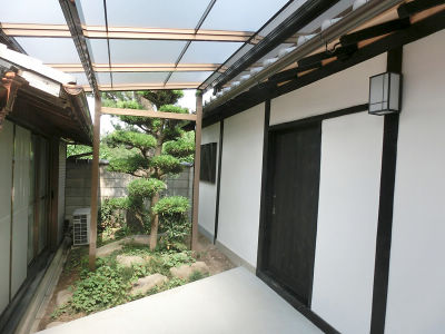 母屋と蔵の間の中庭にテラス屋根を渡し、雨の日でも濡れずに行き来が出来るように。