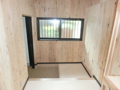 土間とドアを新しくし、壁は漆喰、床は洗い出しで仕上げる。