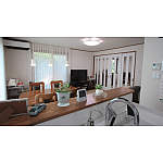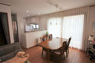 LDKを中心としたオープンスタイルで会話が弾む、「つくる・食べる・語らう」シーンが家族揃って楽しめる快適空間の誕生。光と風、家族の声が満ちあふれる、楽しく暮らせる住まいに機能的な動線をプラス。リビングと和室の間仕切りを採光引戸にしたことにより暗かったリビングが明るくなった。さらに、夕焼け時、オレンジ色に染まっていく様子が素晴らしい眺めで感動のひとときを実感されています。採光に感動し採光の暮らしが始まりました。