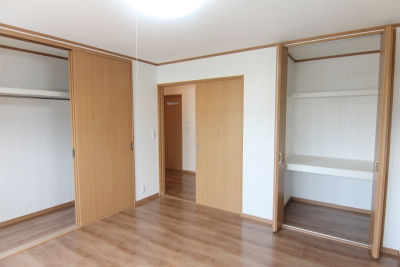 寝室のクローゼットには、ベッドの配置やスペースを確保する為に引戸を採用。