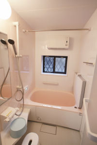 数十年前に増築した離れ(コンクリート造)の中にある浴室・洗面・洗濯室。暗く・寒く・段差がたくさんあるという現状でした。段差の解消や浴室暖房乾燥機の設置・壁を明るく(薄いピンク)にすることにより、広々として明るい空間を実現することができました。段差の解消のため、LDKと洗濯室の間の扉はH1700と低めになっておりますが、今までは下ばかり気にして歩いていたところを、上を向いて歩くことができると、人生における姿勢を変えることに喜びを感じてくださいました。