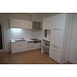調理台が狭い為、作業がしにくとの事でしたので冷蔵庫を移動し、サイズの大きなシステムキッチンに交換。動線を考慮し同シリーズのカップボードを設置した事でキッチンの印象はもちろん作業効率も良くなりました。
