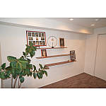 キッチン、水廻り、内装のリフォーム。 キッチン等の水廻りはシックな色目を使う事で落ち着いた雰囲気に変身。 また、約10帖に広くなった洋室には施主様ご希望のエコカラットを2面に張りワンランクUPした空間に仕上がりました。