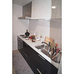 キッチン、水廻り、内装のリフォーム。 キッチン等の水廻りはシックな色目を使う事で落ち着いた雰囲気に変身。 また、約10帖に広くなった洋室には施主様ご希望のエコカラットを2面に張りワンランクUPした空間に仕上がりました。