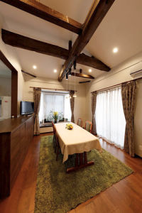 既存のLDKは8畳で区切られた4部屋。建具を外して広く見せていたが、広さを感じ無い為、垂れ壁と建具を撤去し広々使える32畳のLDKに。天井の一部を下がり天井にし、ダウンライトと間接照明でシーンに応じた調光で演出が可能に。壁の一部にエコカラットを採用しアクセントに。あふれた物をしまえる様、ウォークインクローゼットを新設。和室をなくしリビングへの廊下と壁面収納を確保。ヒートショックの気になる洗面所には、壁付け暖房機・SBには美泡湯と天井埋め込み暖房機を設置。
