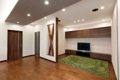 和室部分をリビングとして取り込み、壁の一部にエコカラットを採用し、アクセントをつけた。