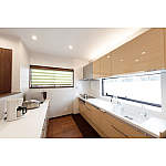 和室をなくしリビングへの通路と収納、ウォークインクローゼットを新設。客間としても利用したいLDKは、垂れ壁と建具を撤去し、広々空間に。キッチンには買い置き食品等の収納スペースを確保。ヒートショックの気になる洗面所には、壁付暖房機・SBには天井埋め込み暖房機を設置。照明は基本ダウンライトを配置し、間接照明と合わせて調光にてシーンを演出。