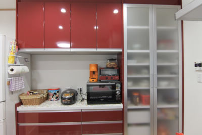 奥様に「全ての食器や台所用品を収納できる!」と喜んでいただきました。