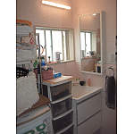 洗濯機との配置を変えることにより明るい洗面台に。