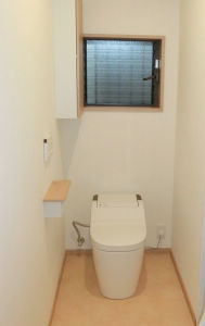 トイレはタイル貼りから床材と壁紙に変えて、冬の寒さ等もなくなり明るい印象に。