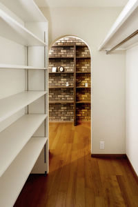 玄関を入ると、可愛らしい照明とニッチ棚がお出迎え。折れ曲がっていた廊下を最小限の直線に修正し、動線もスムーズに。