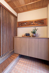 和室にあった欄間を玄関に再利用。元の家の面影を次の世代へと引き継ぎます。