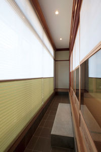 元縁側の、玄関から続く土間は明るく風通しのよい空間。来客や祭り時に活躍。