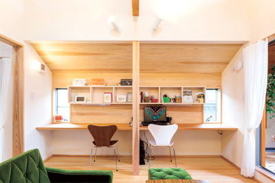 お子さんたちが巣立ち、夫婦ふたりで暮らすことを考えてリフォームされた築30年のT様邸。まず、納戸のように使われていた子ども部屋を和室と広い洗面・浴室に変更。以前は勾配が急で、2階のキッチンまで荷物を抱えて昇るのがひと苦労だった階段を、折り返し階段にし緩やかな勾配に。「昇り降りがとてもラクになりました」と、奥様の負担も軽減。さらに、夏の暑さと冬の寒さを解消するために、1階の床と外壁に高性能のグラスウールを、屋根にはフェノールフォーム断熱材をそれぞれ使用。夏は涼しく冬はあたたかい、省エネとヒートショック対策を考えた、体にやさしい住まいが実現しました。「広島は瀬戸内の温暖な気候が広がる場所。断熱性能を高めればエアコンに頼らず快適に過ごせるんですよ」と語るご主人。こうした心地よさに一役買っているのが、天井や床に使用された杉やヒノキといった天然素材。なかでも新設された柱や梁には広島県産の安芸佐伯杉が、家具と建具の一部には同じく広島県産のヤマザクラとミズメザクラが用いられています。「地元産の素材を使えば山にお金を還元することができる。それが、ふるさとの森を育てることにつながると思います」。玄関脇の庭には、この家のシンボルツリーでもあるトネリコの木を植えました。「落葉樹なので冬は葉を落とす。そこが潔く、すっと立つ姿に癒されます」というのが、トネリコの木を選ばれた理由とか。春には白い花が咲き、訪れる人をやさしく迎えます。