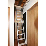 収納式階段に架け替えて収納部を増設。普段使いを優先させました。