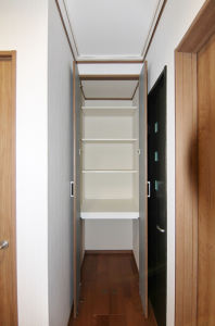 広縁のあった明るい和室を娘様の部屋に。広く取った収納部はそれぞれの使い道でご利用できるように3か所に分けました。