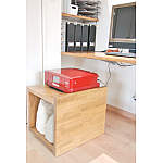 カウンター左下部は、プリンターを収める奥行で設計。大工さんお手製のキャスター付きキャビネットです。