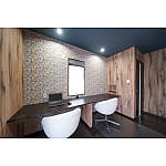 ウォールナットのアクセント壁で、あたたかい雰囲気に。