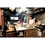 キッチンをステージに見立て、そこに立っていることが楽しくなるような設計をお願いし、その空間が際立るような色調に統一でき大満足。タタミコーナーは家族の集まるかけがえのない空間に。以前は小屋裏に隠れていた、親御さんの思いの詰まった大切な梁も堂々と存在感をだし、京町家のイメージを盛り立ててます。リビングの真ん中に愛犬の居場所「ゴマハウス」をつくり、家族の一人であることの再認識が出来ました。