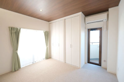 他の部屋と比べトーンダウンして落ち着いた雰囲気に 天井を木目調と間接照明がリラックス空間をうみます